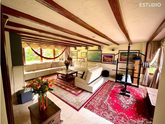 La casa tiene un lote de 520m2, construidos 370 m2, cuenta con 4  habitaciones cada una con su baño privado, cuarto y baño de servicio, tiene una sala de televisión con chimenea, 2 salas adicionales ambas con chimenea, comedor con espacio para comedor auxiliar de 10 puestos, espacio para bar, cocina, patio interno y patio exterior, parqueadero para 10 carros.